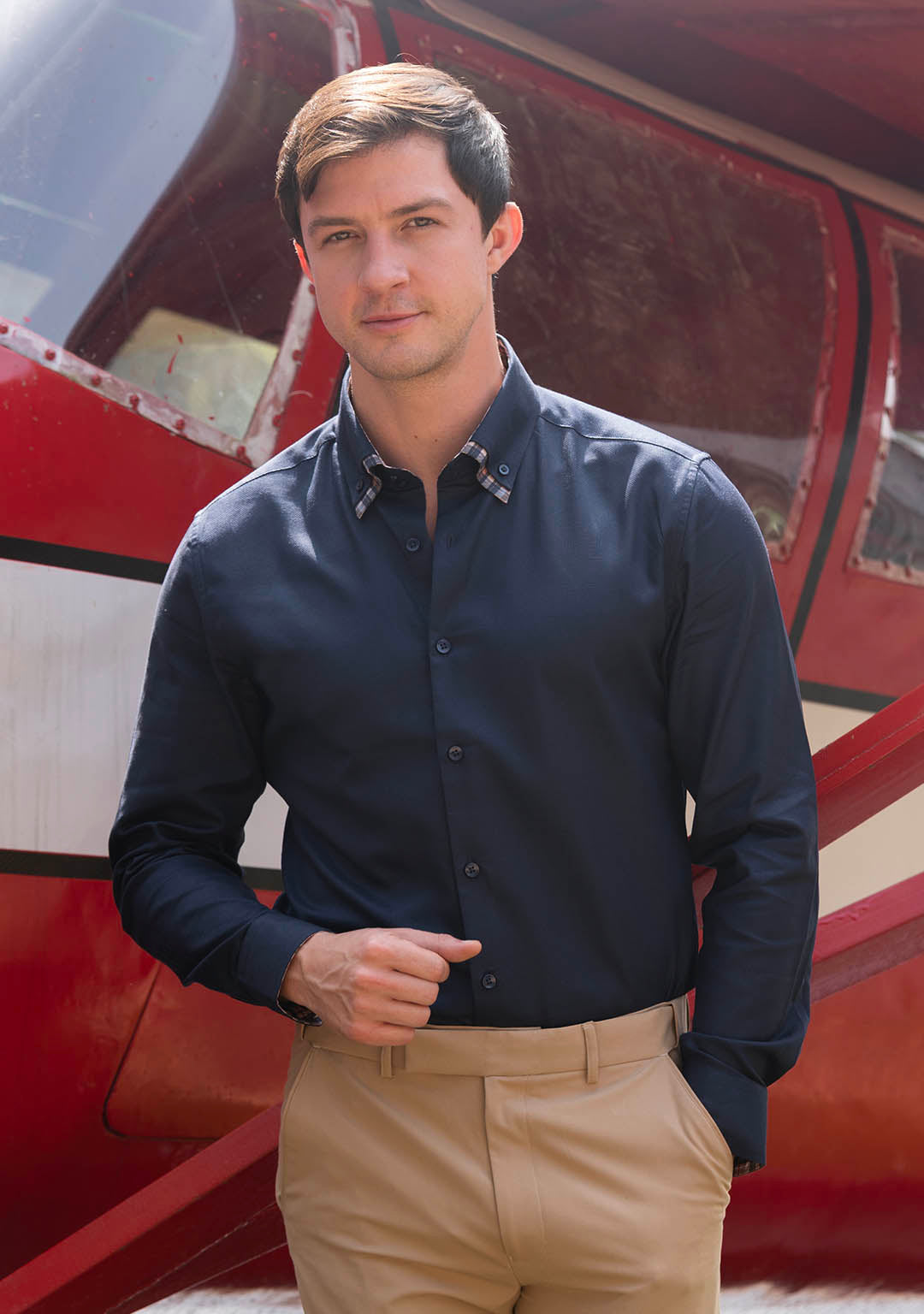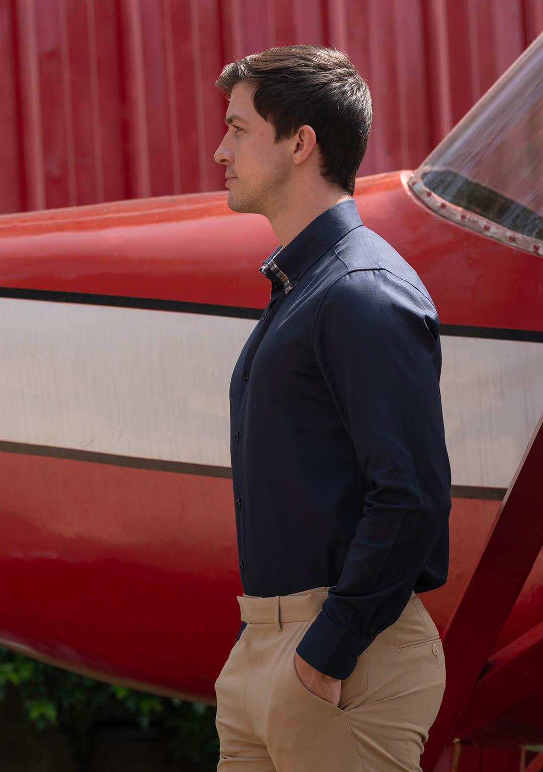 100% Premium Cotton Sateen. Tailored fit, sits perfectly on chest & tapers along the waist. Features Contrast checks fabric in the collar and cuffs. Crown embossed, metal snap buttons at cuff. Light-weight, 2-way stretch fabric with natural sheen.