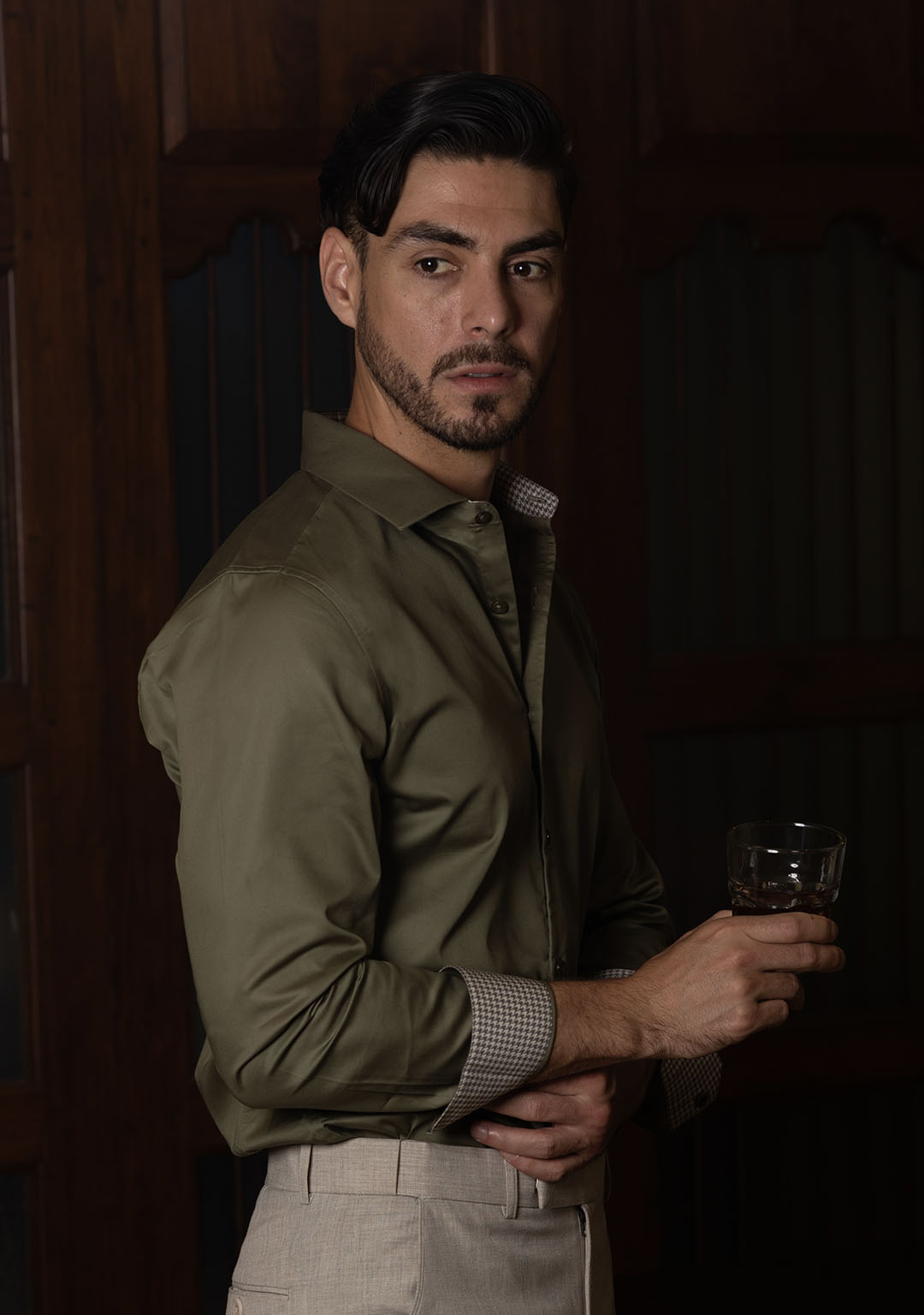 100% Premium Cotton Sateen. Tailored fit, sits perfectly on chest & tapers along the waist. Features Contrast checks fabric in the collar and cuffs. Crown embossed, metal snap buttons at cuff. Light-weight, 2-way stretch fabric with natural sheen.